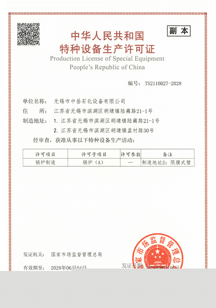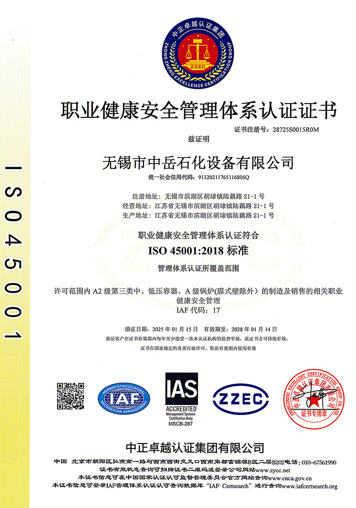 中岳石化下設四個控股子公司——無錫市中岳石化設備有限公司、無錫華凱環境工程有限公司、山西中岳實業有限公司、武漢中岳節能技術有限公司??偛课挥诮洕l達的長江三角洲,風景秀麗的太湖之濱——無錫市胡埭工業園區。是專業生產石油、化工、醫藥、染料、冶金、環保、焦化等行業用成套設備的專業公司。公司銀行資信等級4A級,公司注冊資金:3080萬,并獲得江蘇省高新技術企業、無錫換熱技術工程裝備中心證書,同時也是國內外主要工程公司設計院的合格供應商。